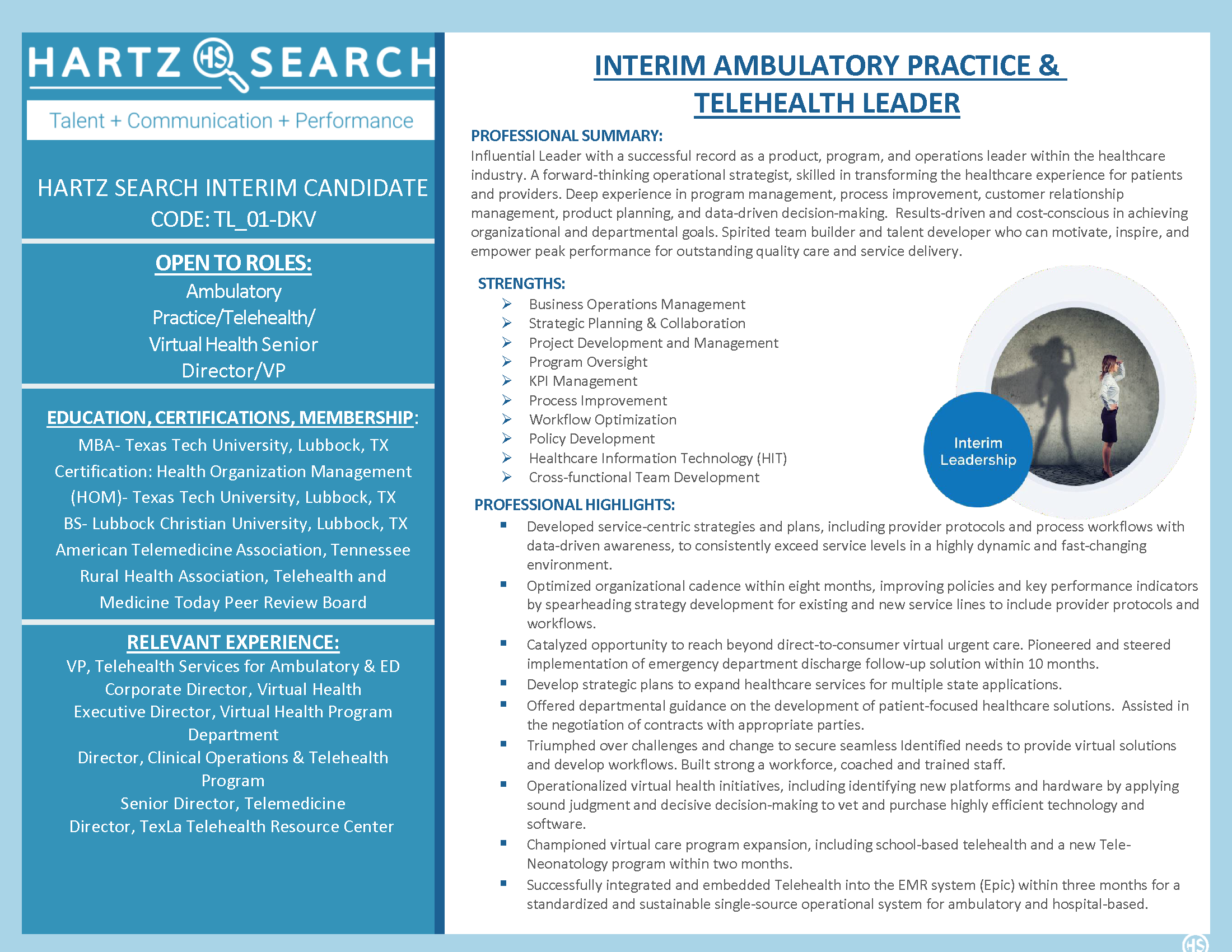 INTERIM AMBULATORY PRACTICE & TELEHEALTH LEADER
