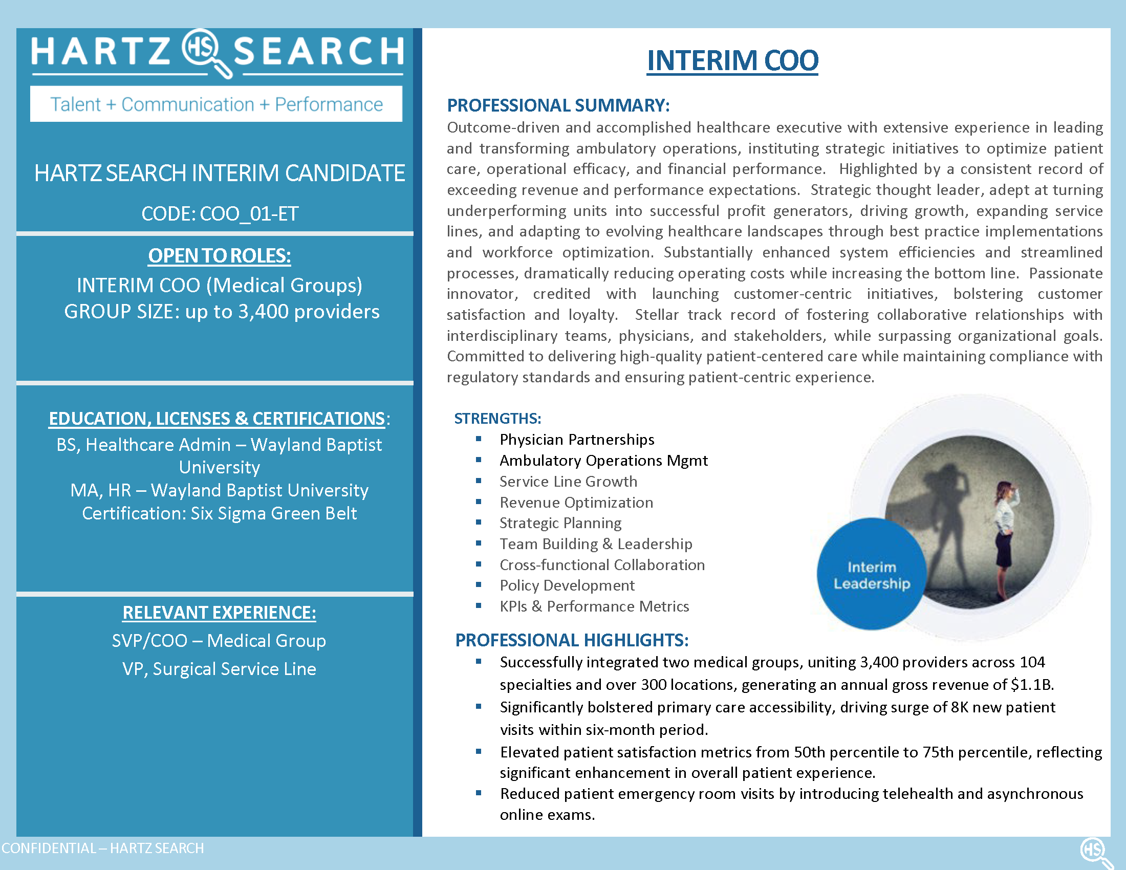 INTERIM CHIEF OPERATING OFFICER - MEDICAL GROUPS IMMEDIATE AVAILABILITY OPEN TO ROLES: COO…