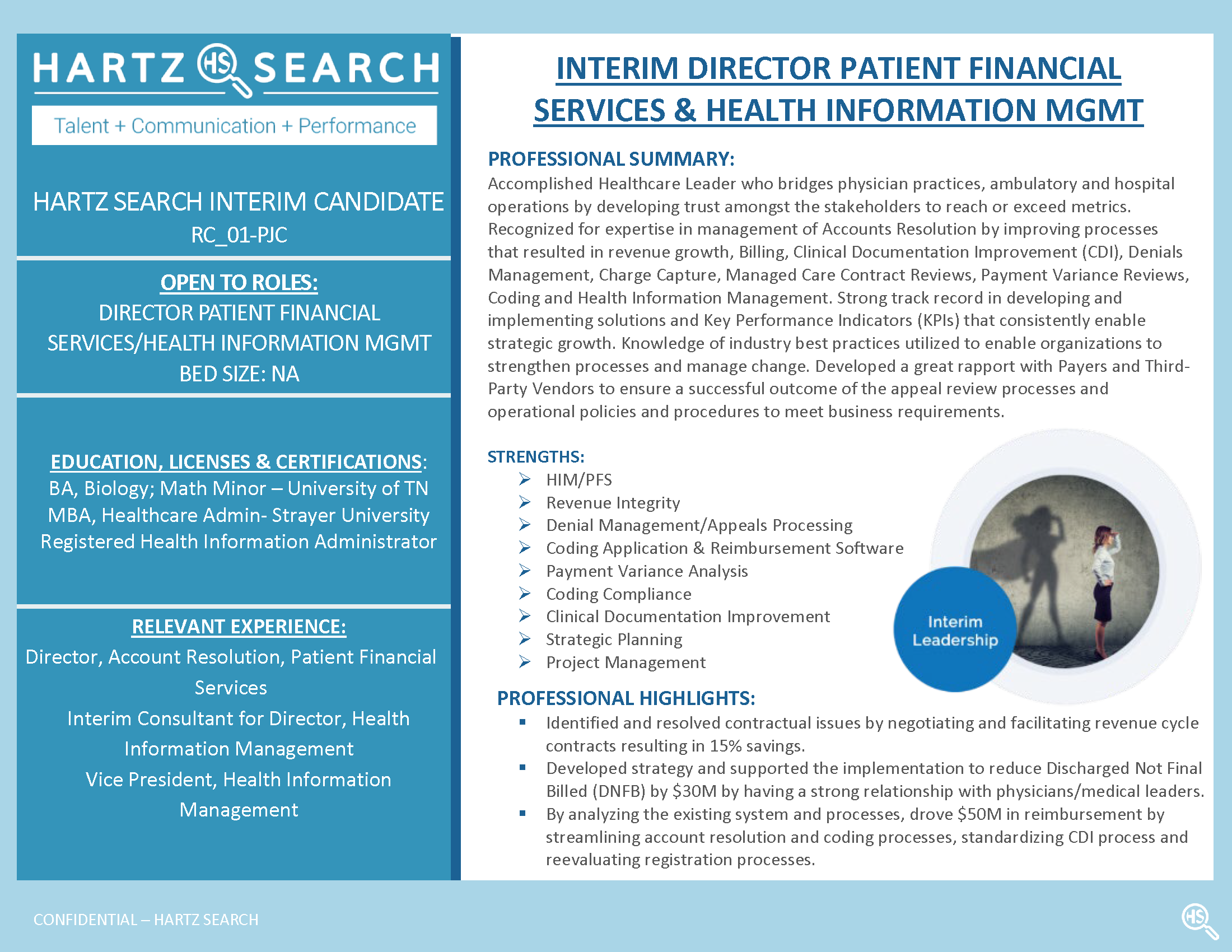 INTERIM DIRECTOR PATIENT FINANCIAL SERVICES & HEALTH INFORMATION MANAGEMENT